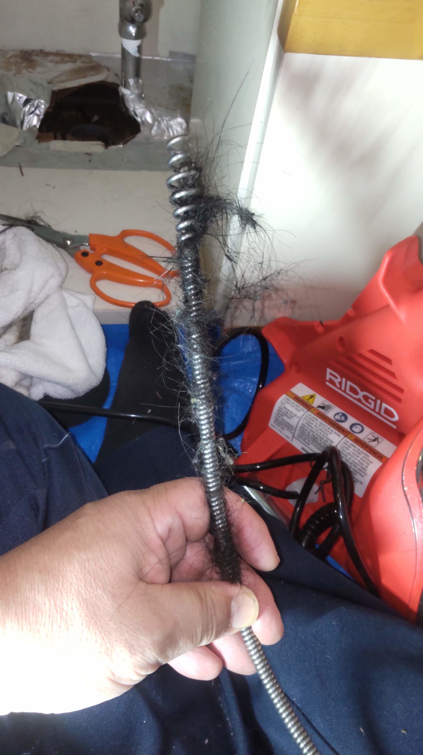 作業してみると一気に水が 引いていくのが判り… トーラーを戻し先端を見る と髪の毛が絡みついていま した。 排水管が鋳鉄管で40年程、 経ってる為、内部がサビサ ビで… そこに、髪が絡みついた詰 まりでした。 後は、洗面から高圧洗浄を して無事作業が終了しまし た。 下記は、作業終了した時の 浴室の画像です。 サビが凄すぎます‼ 勿論、浴室も清掃してから 帰ってます。