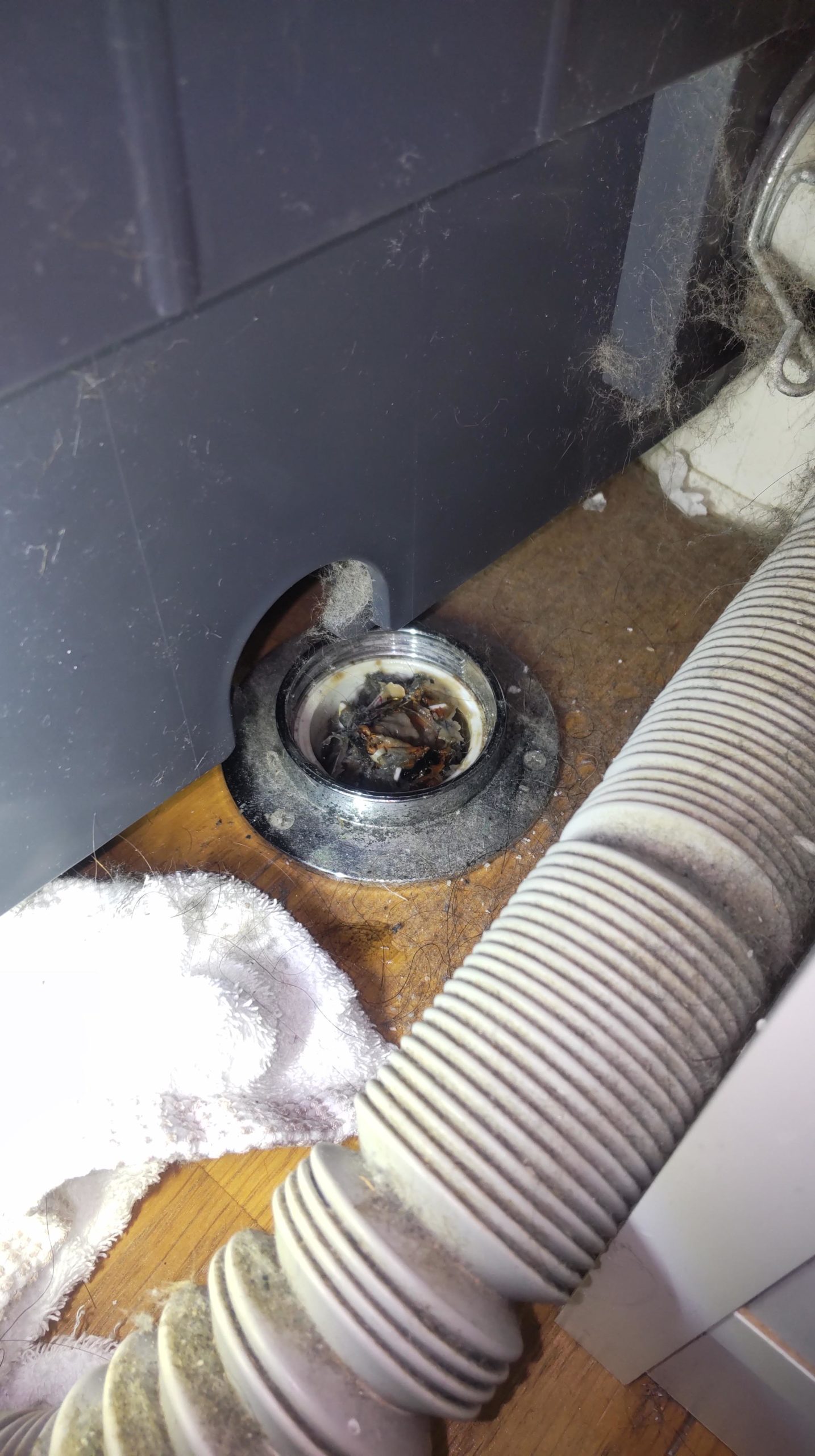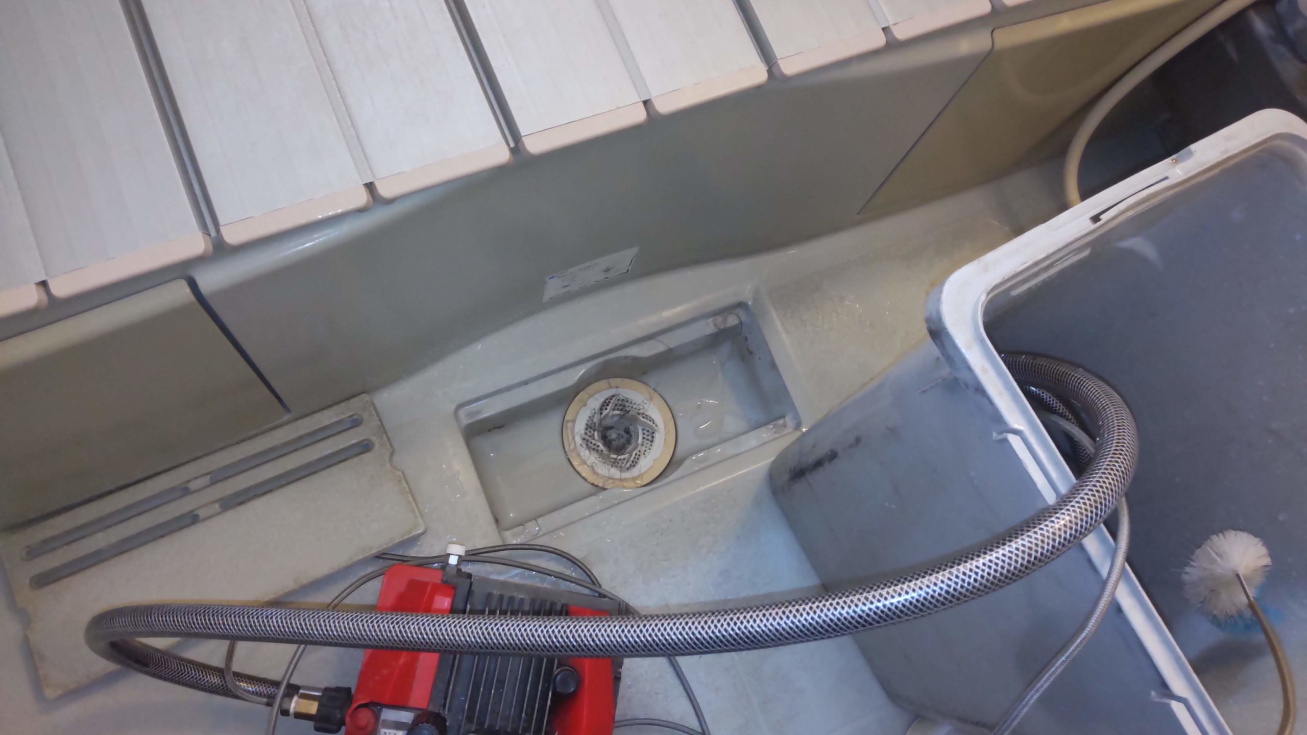 高圧洗浄の洗浄ホースは、 10メートルありますが… 上記の画像を見ると洗浄 ホースが10メートル、 全部入ってるのが確認で きます。 この時点では、流れは、 良くなりましたが少し 不安が残る流れです。 後は外排水からの高圧 洗浄に期待です。 次は洗濯排水です。